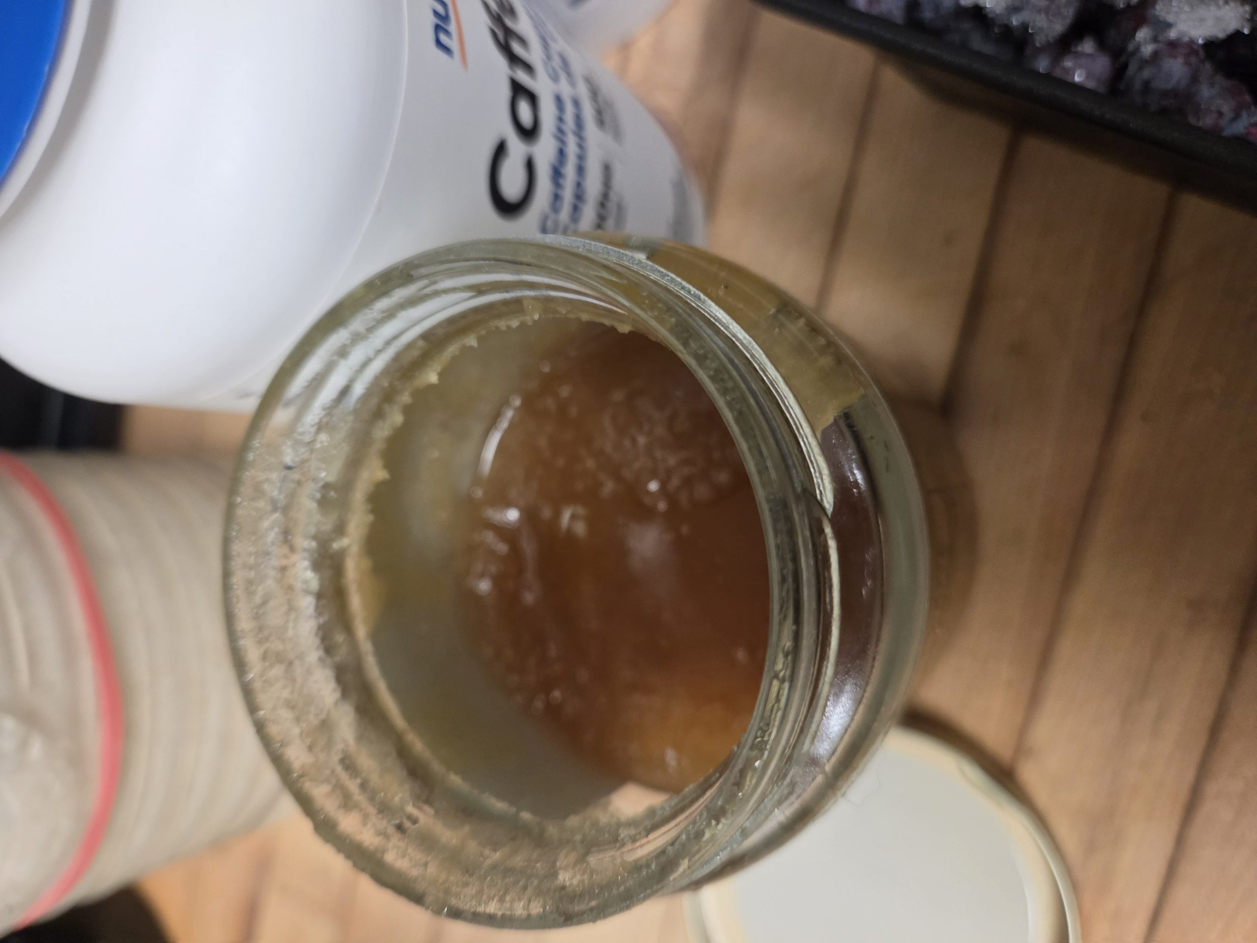 • In a 2-cup measuring cup, warm about 1–1½ cups of filtered water to room temperature. Add the honey, Celtic sea salt, magnesium chloride, potassium citrate, and caffeine powder (if using). Stir vigorously until everything is completely dissolved—no gritty bits left.