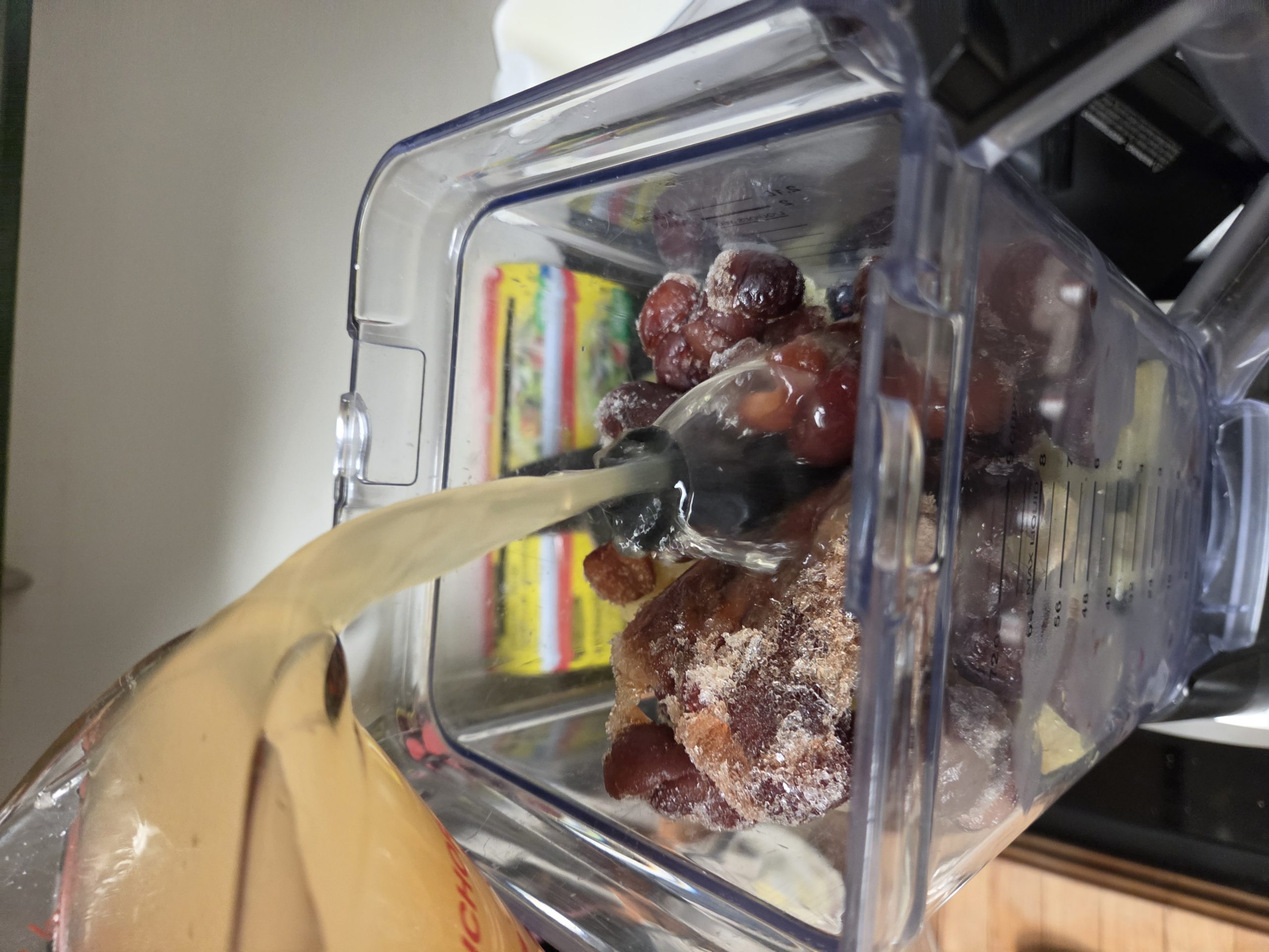 • Top up blender with cold filtered water until you hit exactly 2 liters. Blend thoroughly for even distribution.