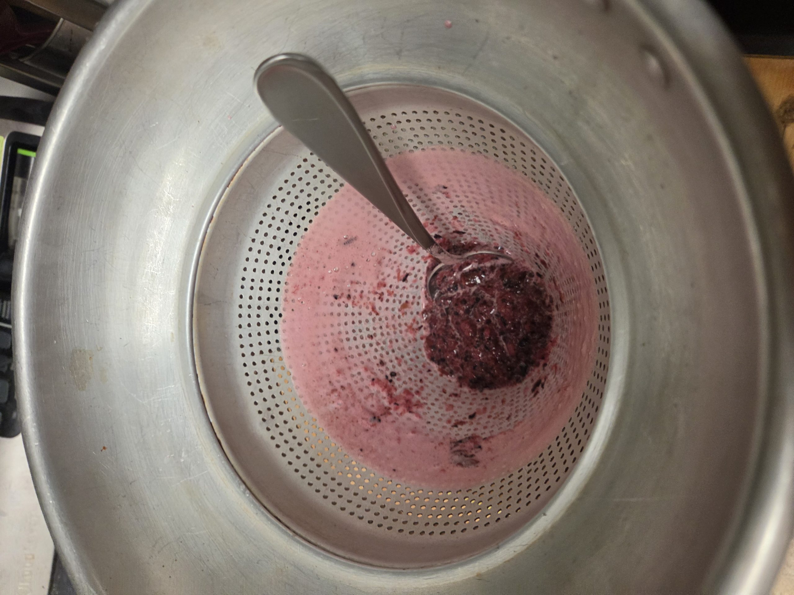 • Pour the entire batch through a fine-mesh strainer or sieve into your storage container to remove any seeds or pulp. (Optional but highly recommended for silky texture.)