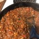 - Brown ground beef if lots of fat drain off most and keep a little for frying onions, garlic and bell pepper